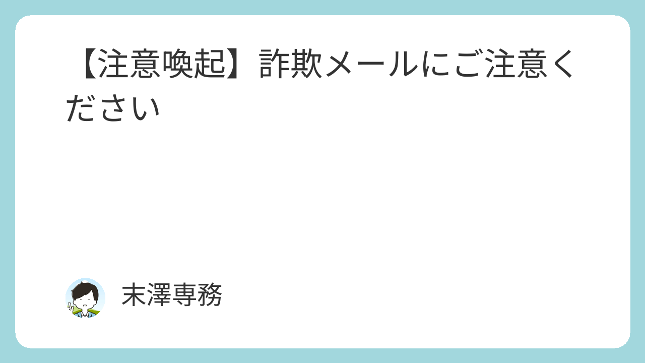 当社の名前、及び代表者名を使用した詐欺メールを確認しております。