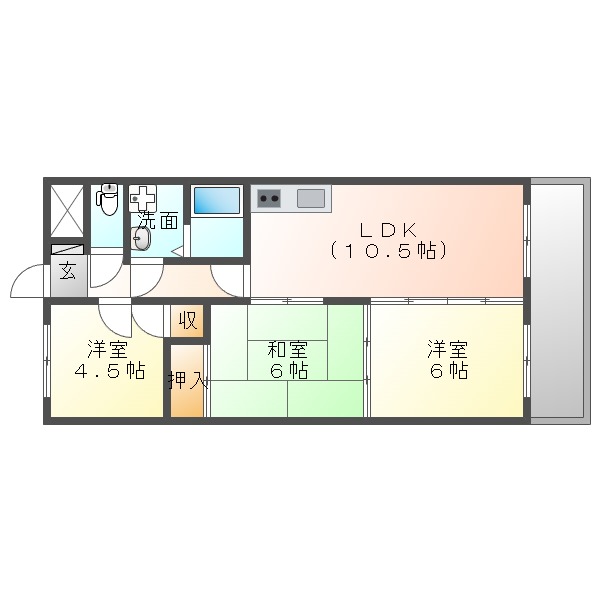 リビングは10.5需帖なので格別に広くはありませんが、賃貸では上位の広さ。
